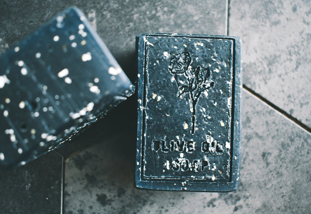 A gorgeous exfoliating bar of Rosemary Charcoal with ground organic oats.